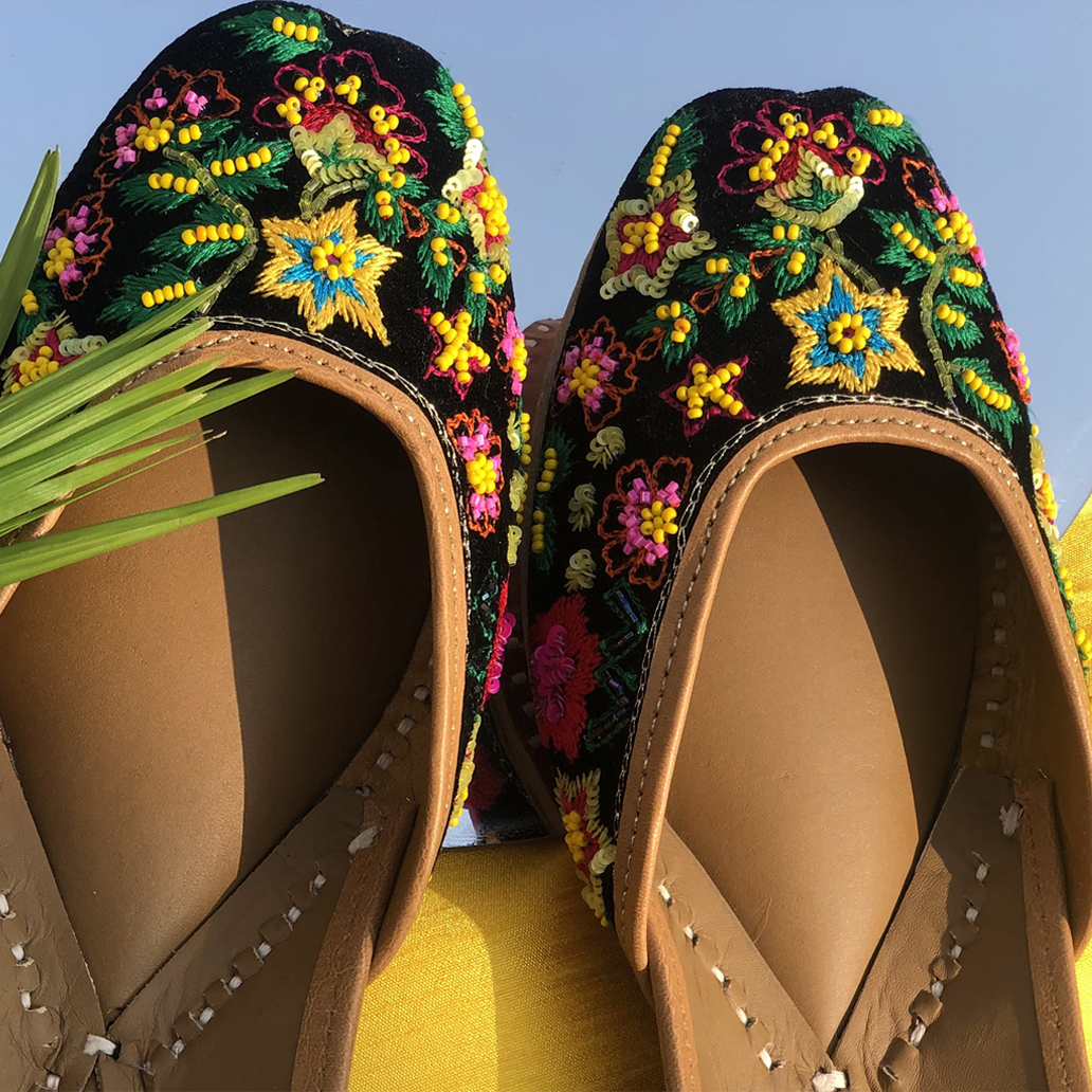 As colorful and bright as it looks, these irresistible Gul Juttis are definitely a catch.